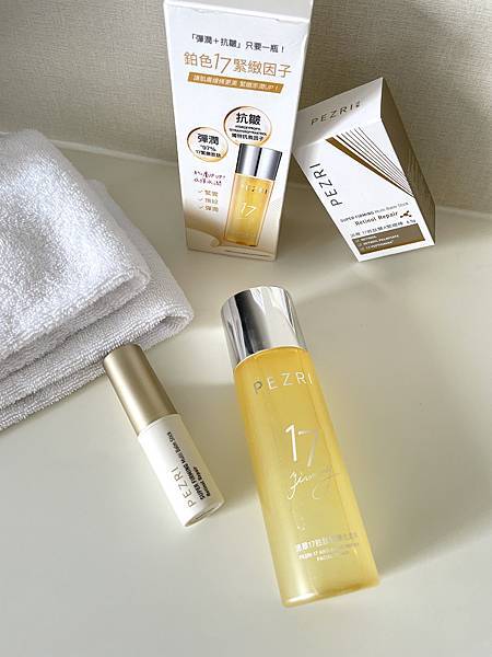 「17胜肽緊緻化妝水」及添加A醇的棒狀精華「17胜肽雙A緊緻棒」